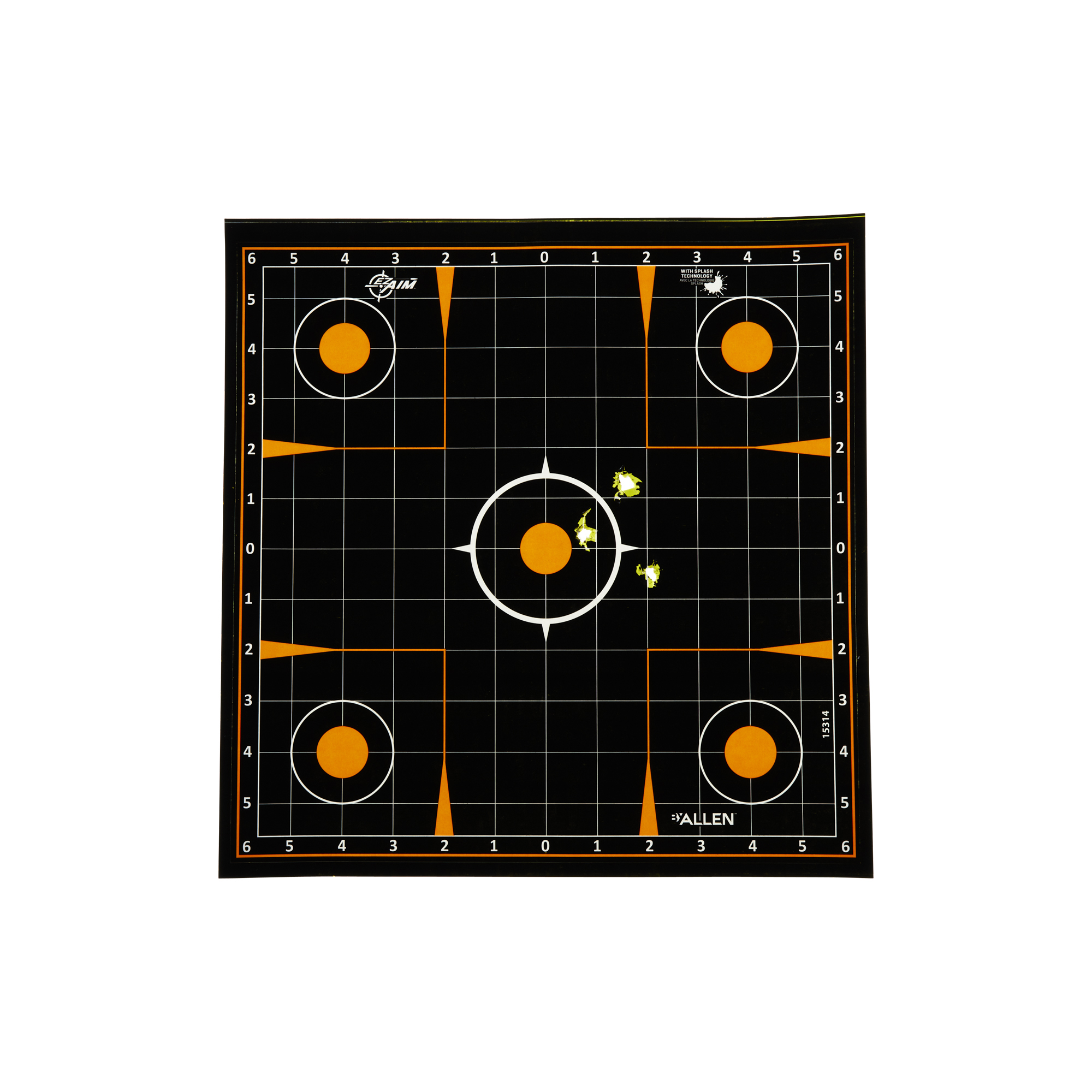 • SPLASH TECHNOLOGY: Designed with Splash Technology & flaking paper to showcase shots of impact with a bright yellow halo that surround the bullet holes.