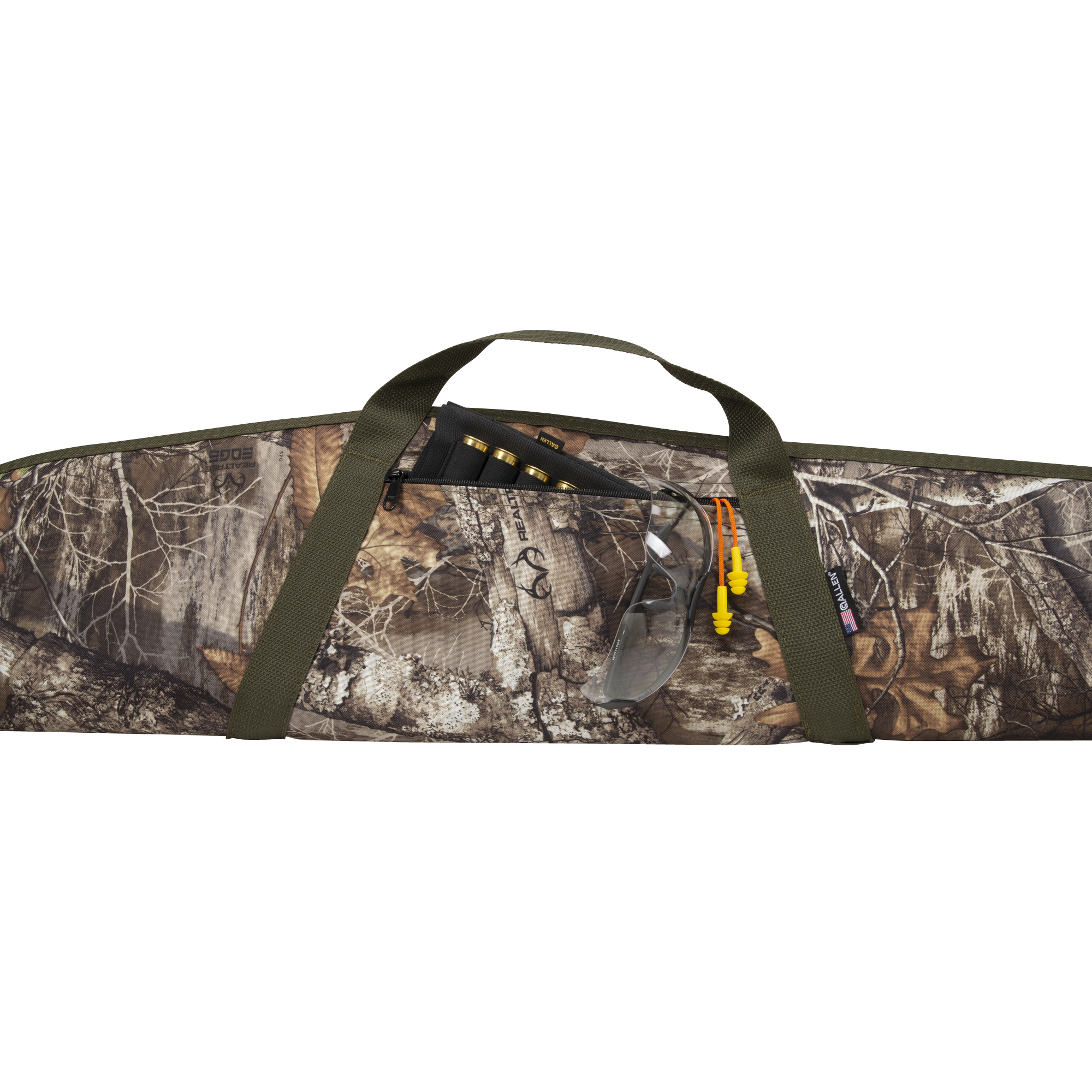 The Emerald 52-inch Shotgun Case by Allen is made from rugged Endura fabric in Realtree® Edge™ and Olive. Features dense foam padding to keep your shotgun safe during transport. The two zippered accessory pocket is great to carry all your shooting accessories. The zipper system is fully lockable to help keep your shotgun secure and the padded handle makes transport to and from the range easy.