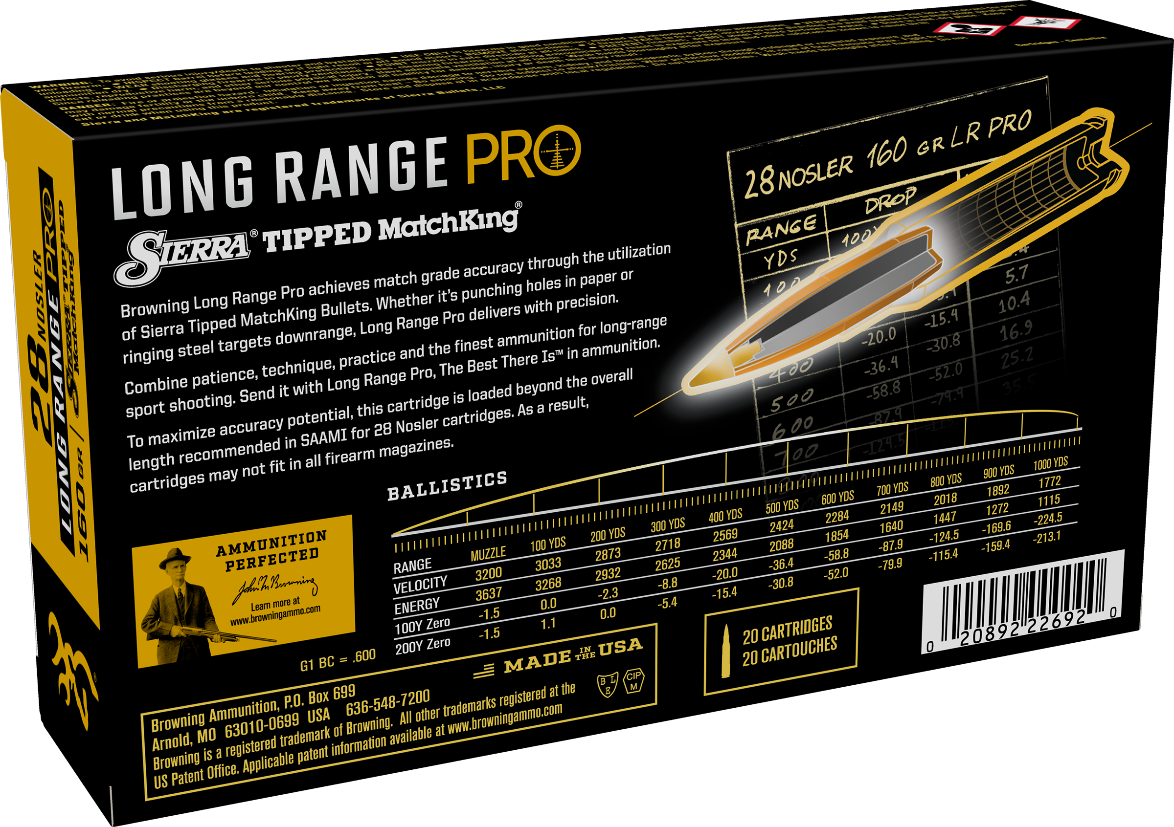 Browning Ammo 28 Nosler 160 Gr Long Range Pro