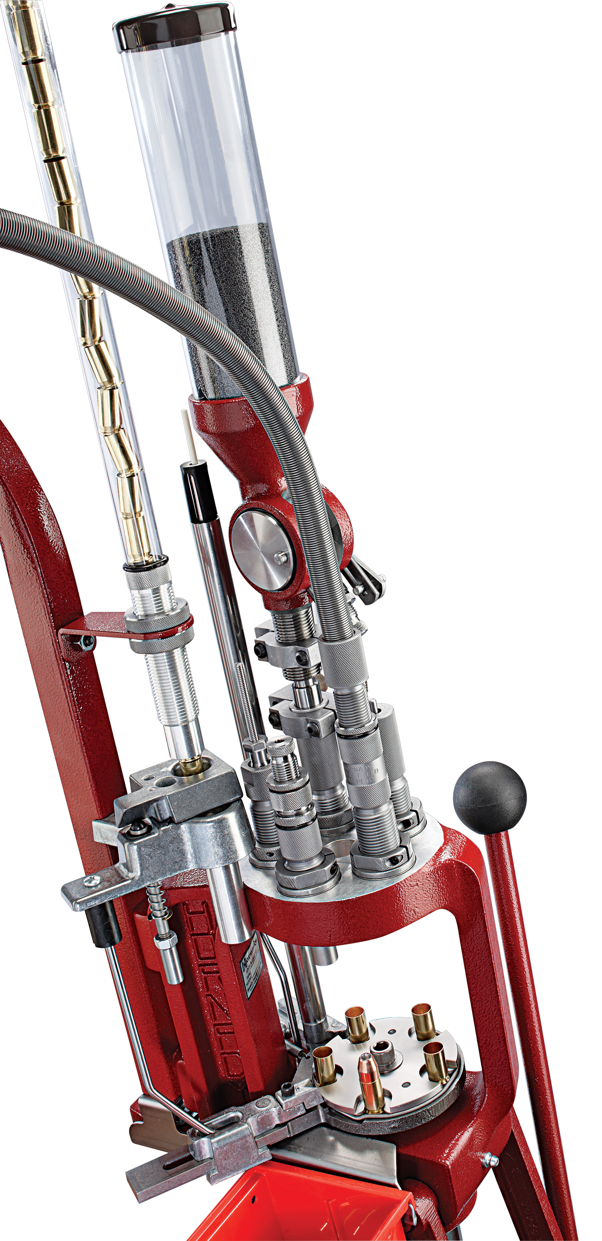 With a single pull of the handle, you’ll feel the difference between this high-performance machine and ordinary reloading presses. You’ll feel the smooth responsiveness, the rugged construction, and most of all, the power! The Power-Pac Linkage System literally multiplies and accelerates the leverage you apply to the handle. And since the AP features automatic indexing, priming and ejection, every pull of the handle give you a precisely loaded round.