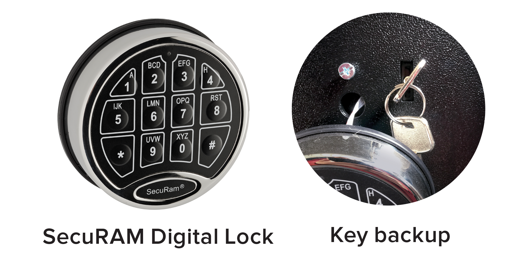 SecuRAM™ Lock: UL-listed digital lock with EMP-proof mechanical key backup