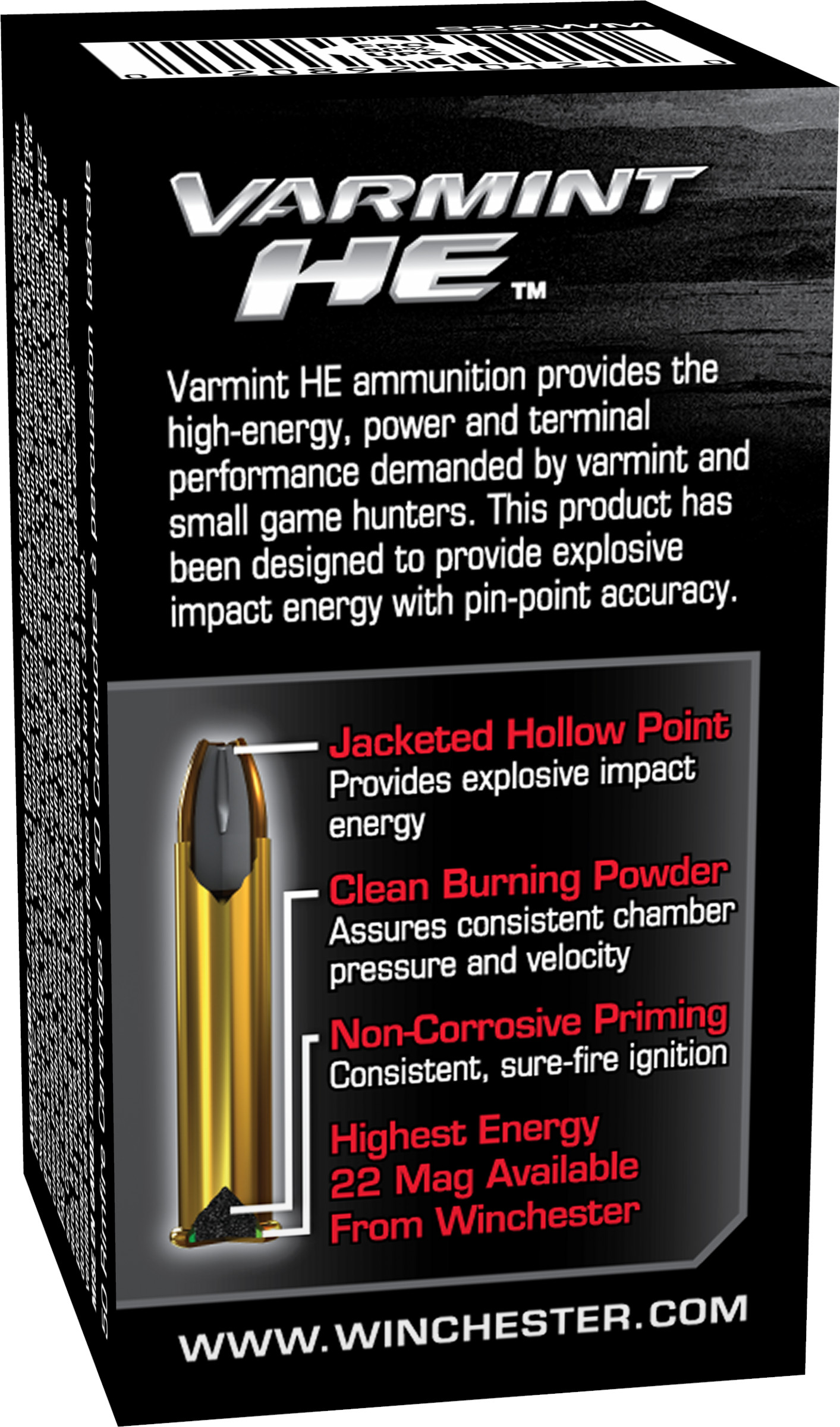 WINCHESTER AMMO 22 WMR VARMINT HE JHP 34 GR